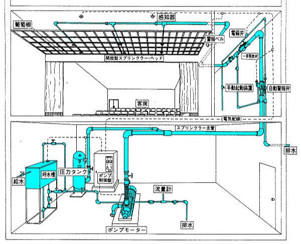 | スプリンクラー スプリンクラー設備とは 消火設備の中で最も古くから用いられていたものの1つであり、 火災を感知すると、天井についているスプリンクラーヘッドから水を放出して 消火する、極めて有効な設備である。 写真
